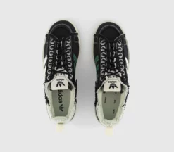 The Australian-based label reimagines the classic Campus 80’s through the lenses of a modernist. Adapting the low-key retro style with oversized metallic eyelets, and a worn look with a fray finish on the canvas upper. With the iconic 3-stripes on the outer sidewalls in white and green on the inner. Co-branded patch on the tongue & SFTM patch on the side heel.Â